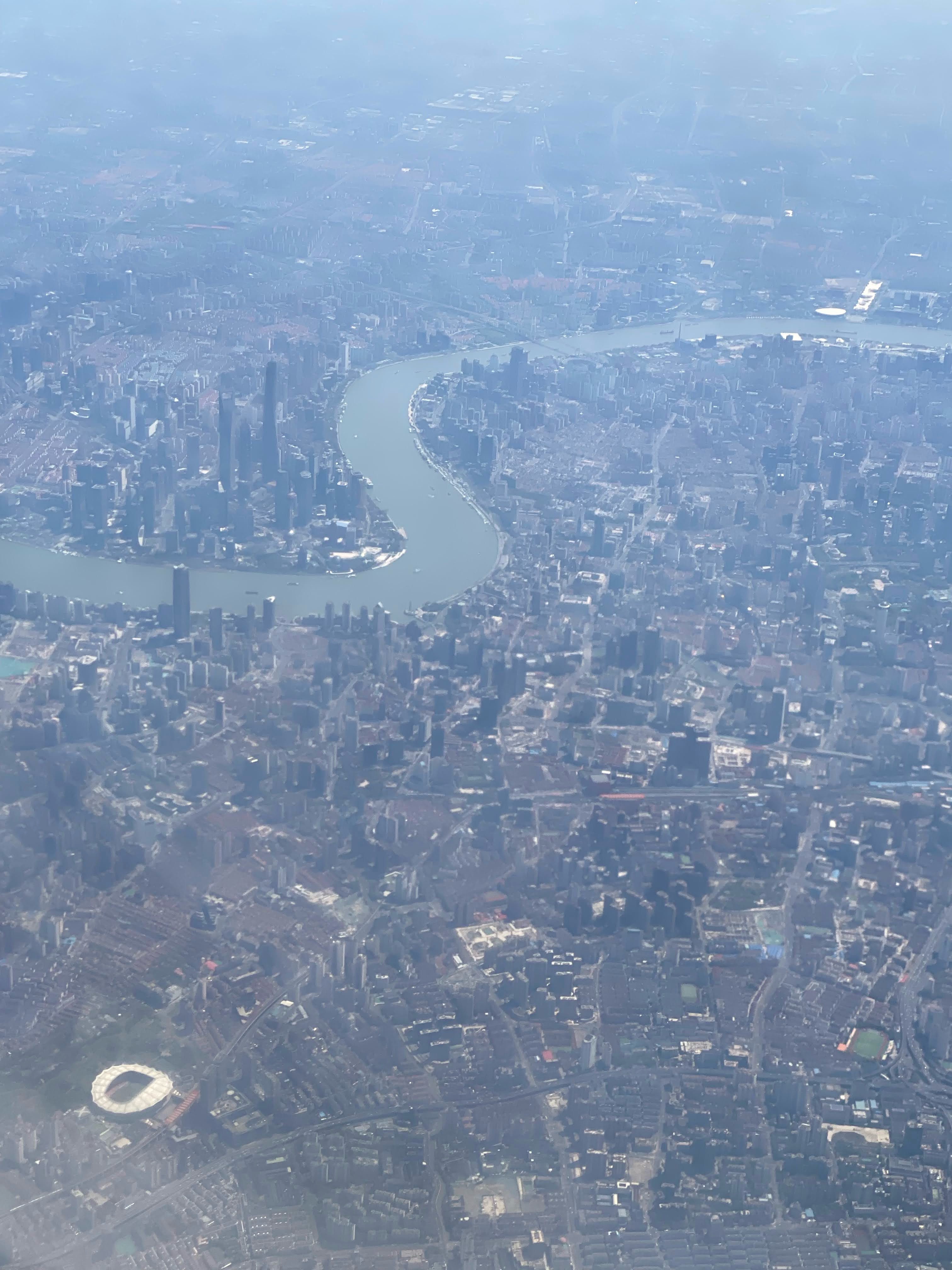 동방명주 포함 루지아주이의 고층 건물들, 왼쪽 밑은 홍코 축구경기장 인가 - 하면서, ( 앞으로 다가올 미래도 모른 채..... )